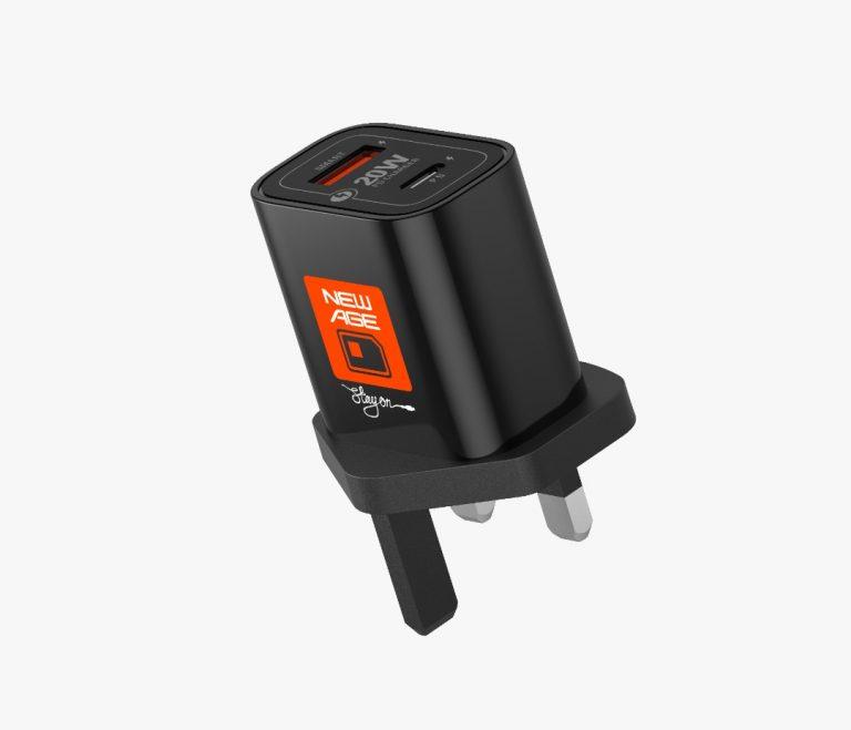 The New Age Jazzy PD 33W Fast Phone Charger is a compact and efficient charging solution designed to power up your devices quickly and safely. With dual output ports—USB-C and USB-A—it allows simultaneous charging of two devices, such as smartphones, tablets, or wearables.