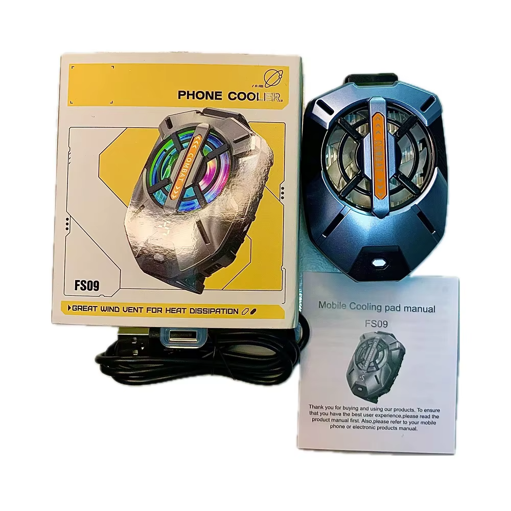The Phone Cooler FS09 is a portable cooling device designed to help regulate the temperature of your smartphone during heavy use, such as gaming or video streaming. It features a compact design with an efficient cooling system, often utilizing a combination of fans and heat dissipation technology. The FS09 is typically powered via USB, making it easy to use with most smartphones. Its primary function is to prevent overheating, ensuring better performance and preventing potential damage to the phone's components. The device is lightweight, easy to attach, and can be used on a variety of phone models.