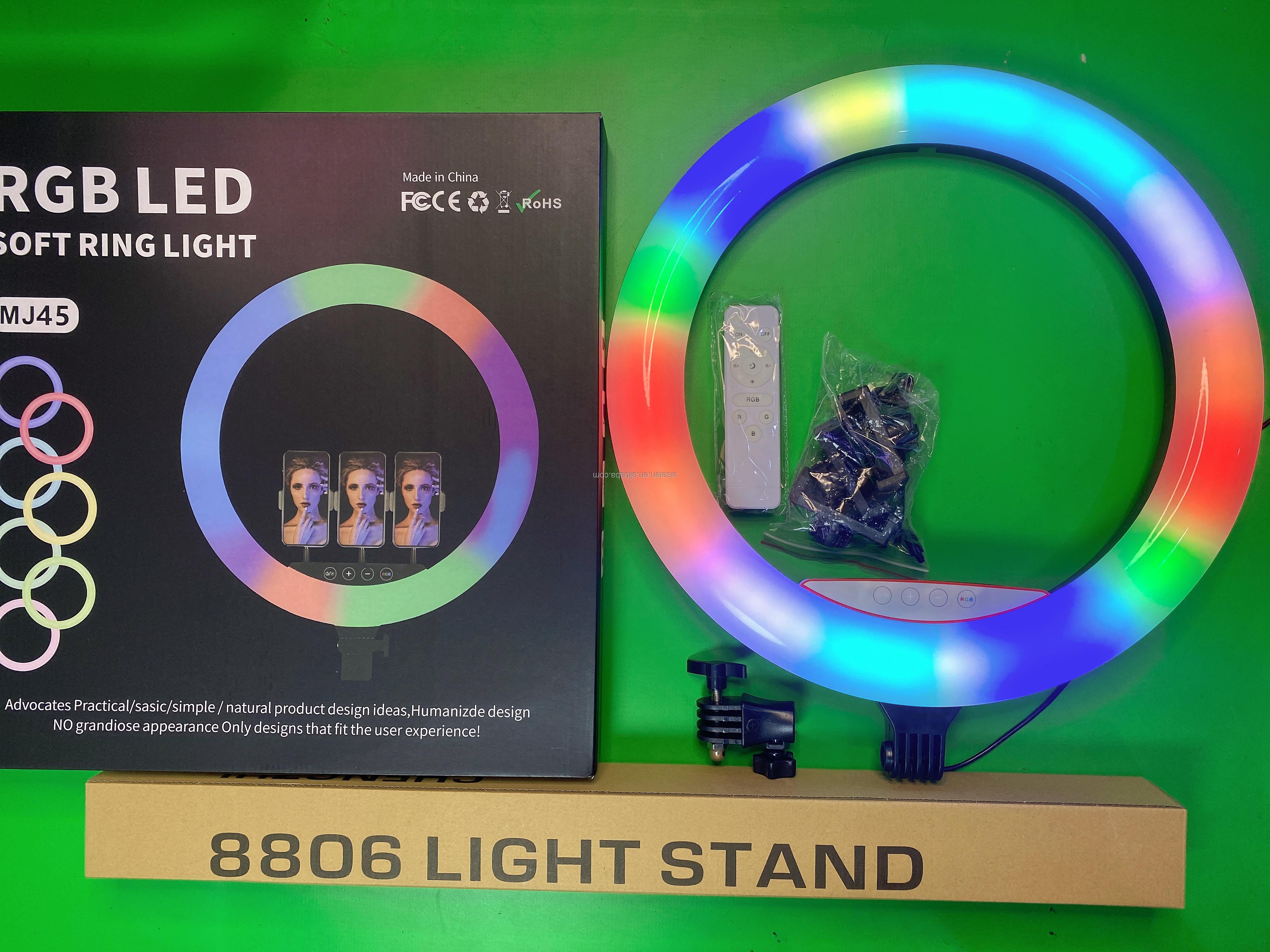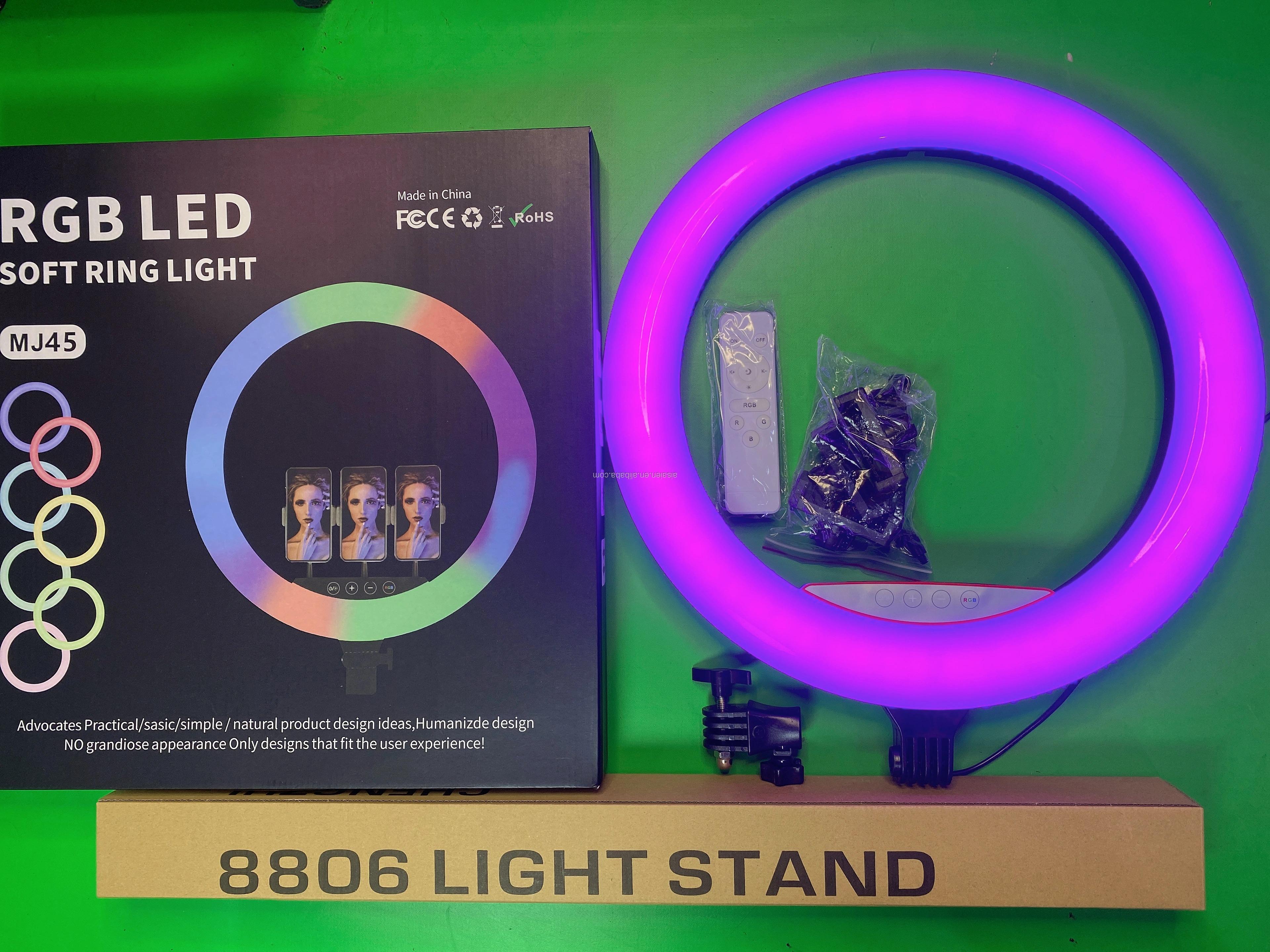 The MJ45 18 Inch RGB Selfie Ring Light is a versatile and stylish lighting solution designed specifically for selfies and various photography applications.