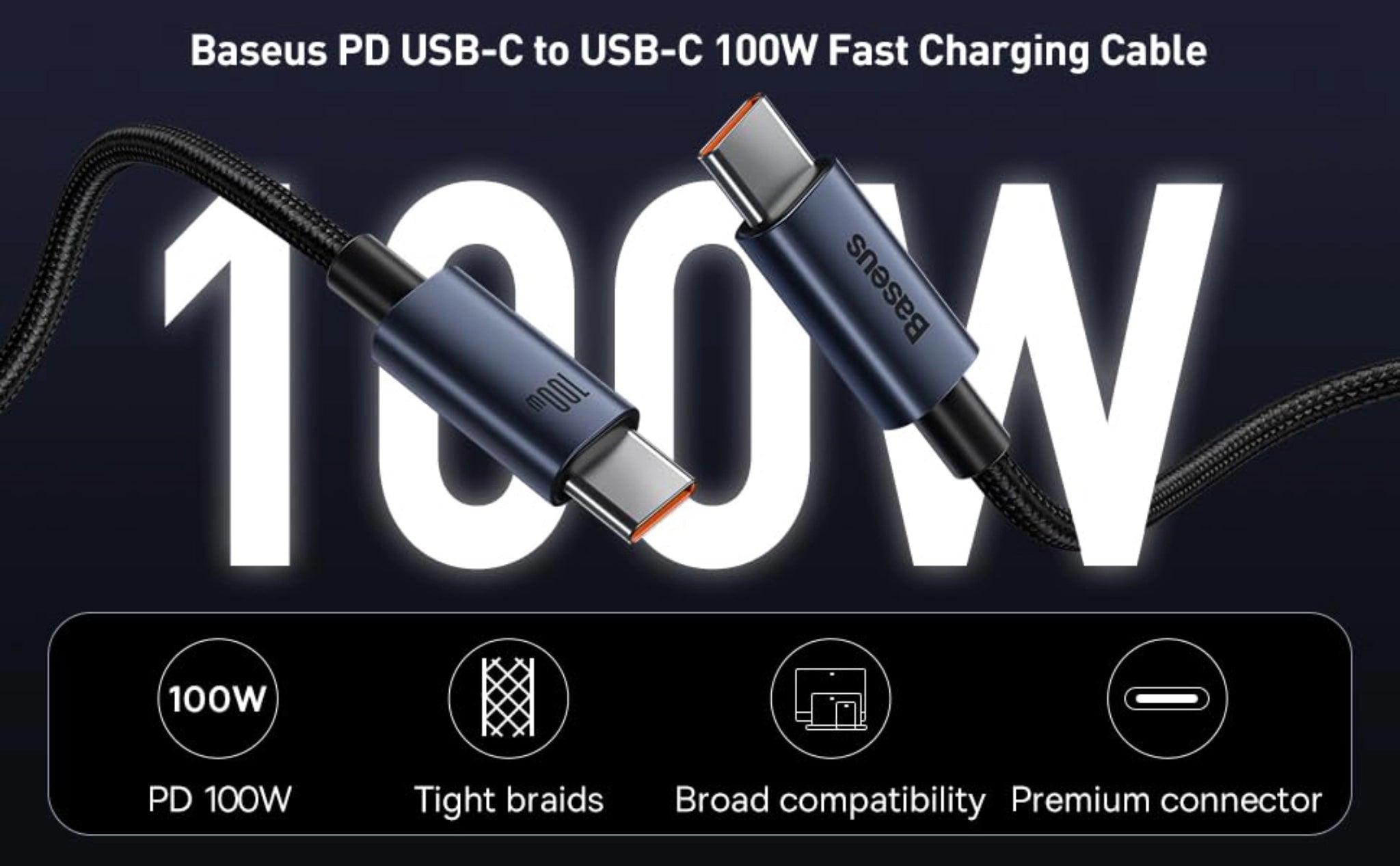 The BASEUS 100W Type-C to Type-C Cable is a high-performance charging and data transfer cable designed for fast and efficient power delivery. With 100W (20V/5A) PD fast charging , it supports rapid charging for laptops, tablets, and smartphones. The cable features high-quality braided nylon construction , ensuring durability and resistance to wear and tear. It also supports high-speed data transfer for seamless connectivity.