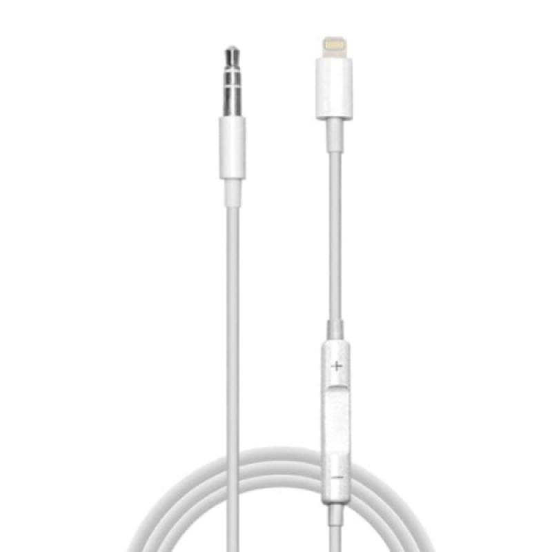 The Lightning to 3.5mm Aux Audio Wire Control Cable (White) is a high-quality cable designed to connect devices with a Lightning port (such as iPhones, iPads, or iPods) to headphones, speakers, or other audio equipment that use a 3.5mm AUX input. This cable supports both audio playback and inline control, allowing users to adjust volume, play, pause, or skip tracks directly from the cable. Its white design gives it a sleek, modern look, and the durable construction ensures long-lasting performance.