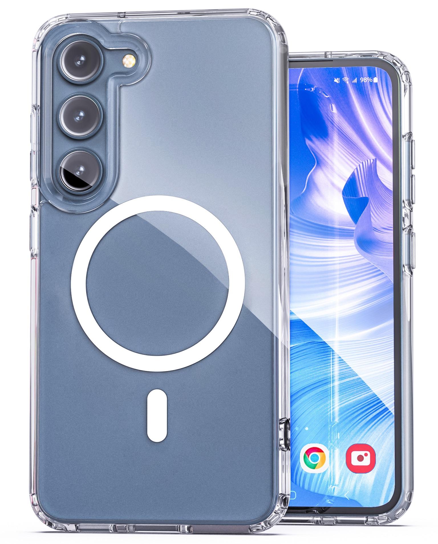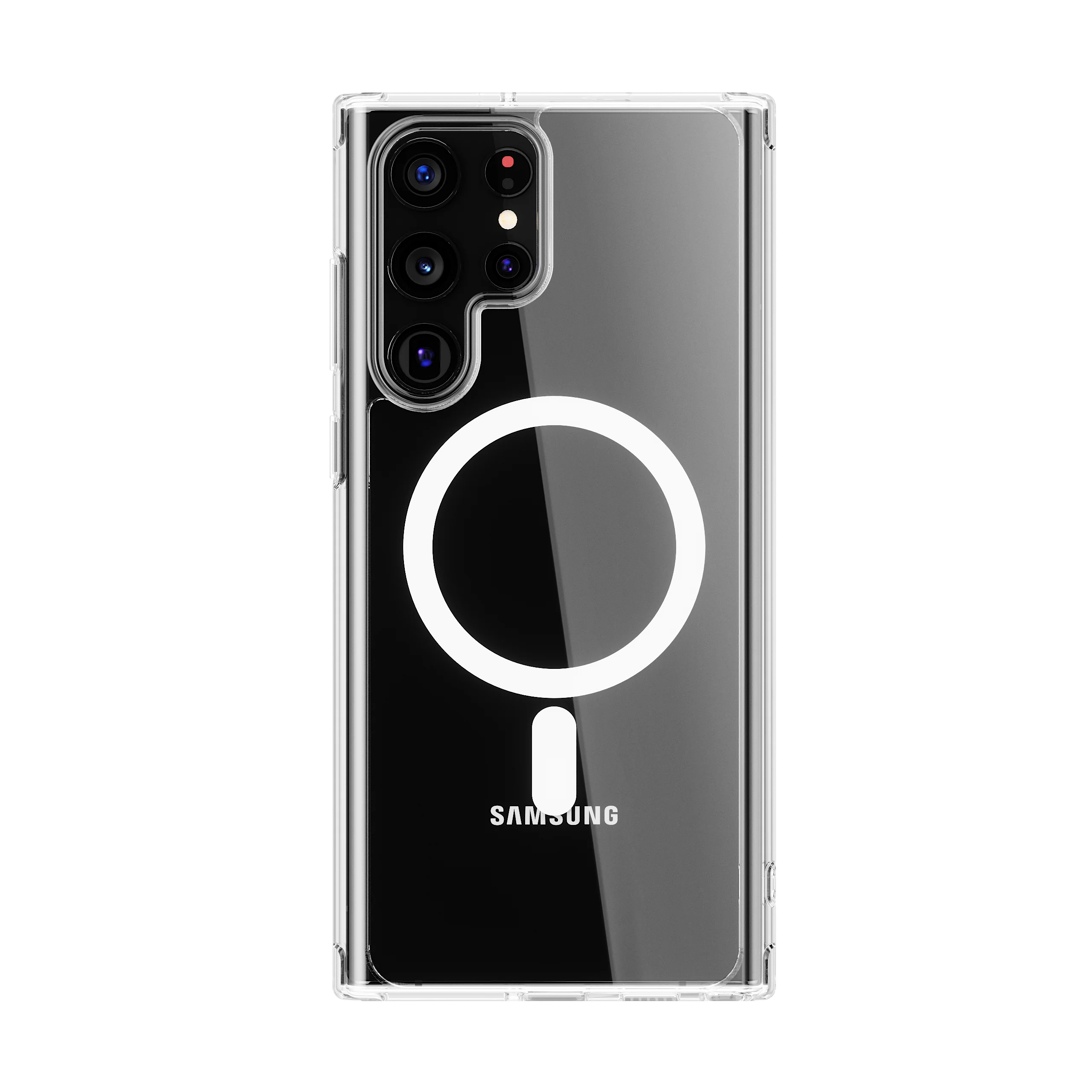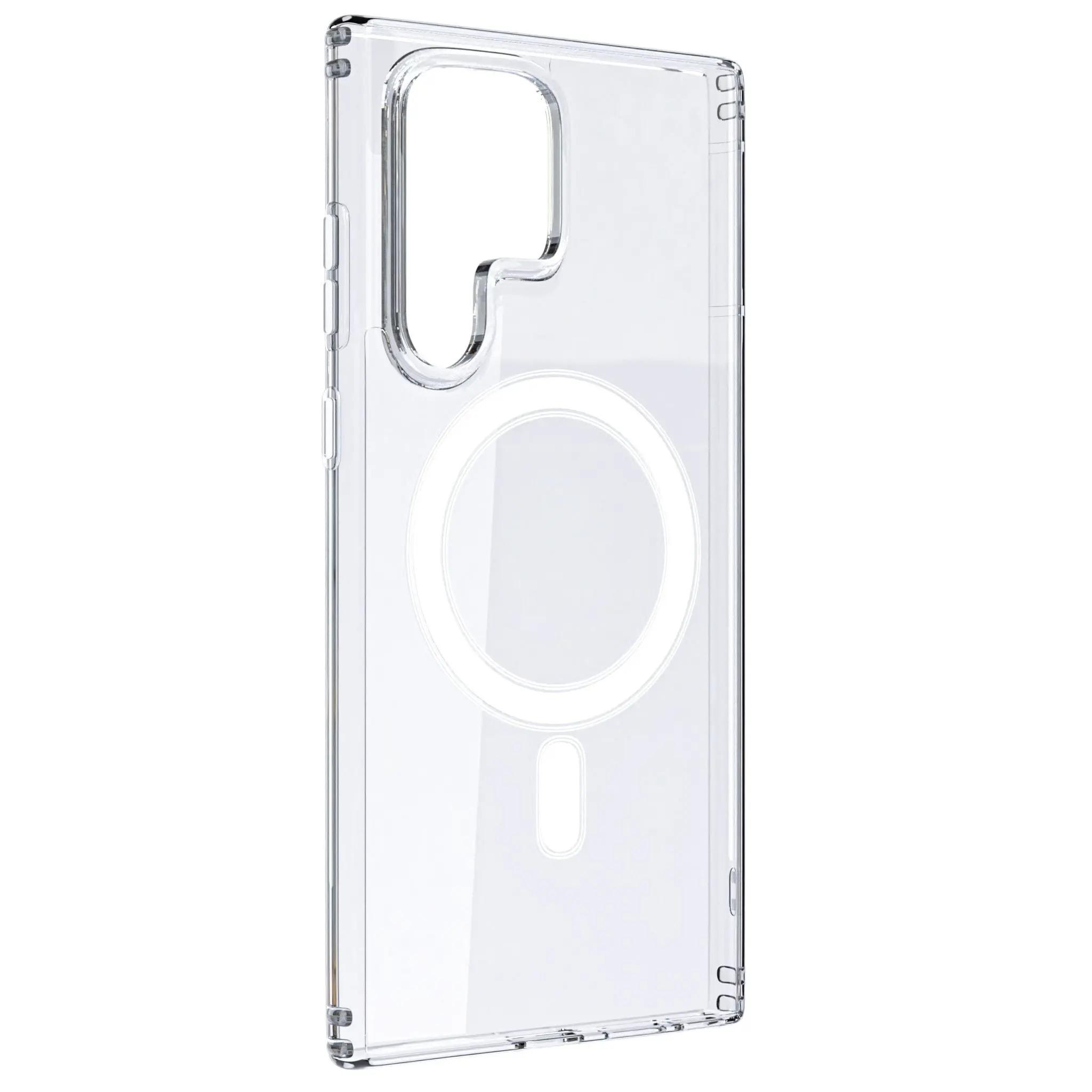 The  Samsung Clear Case with MagSafe is a transparent protective case designed by Samsung for Samsung models. It offers a slim, lightweight design that showcases the phone's original aesthetic while providing durable protection against drops, scratches, and everyday wear.